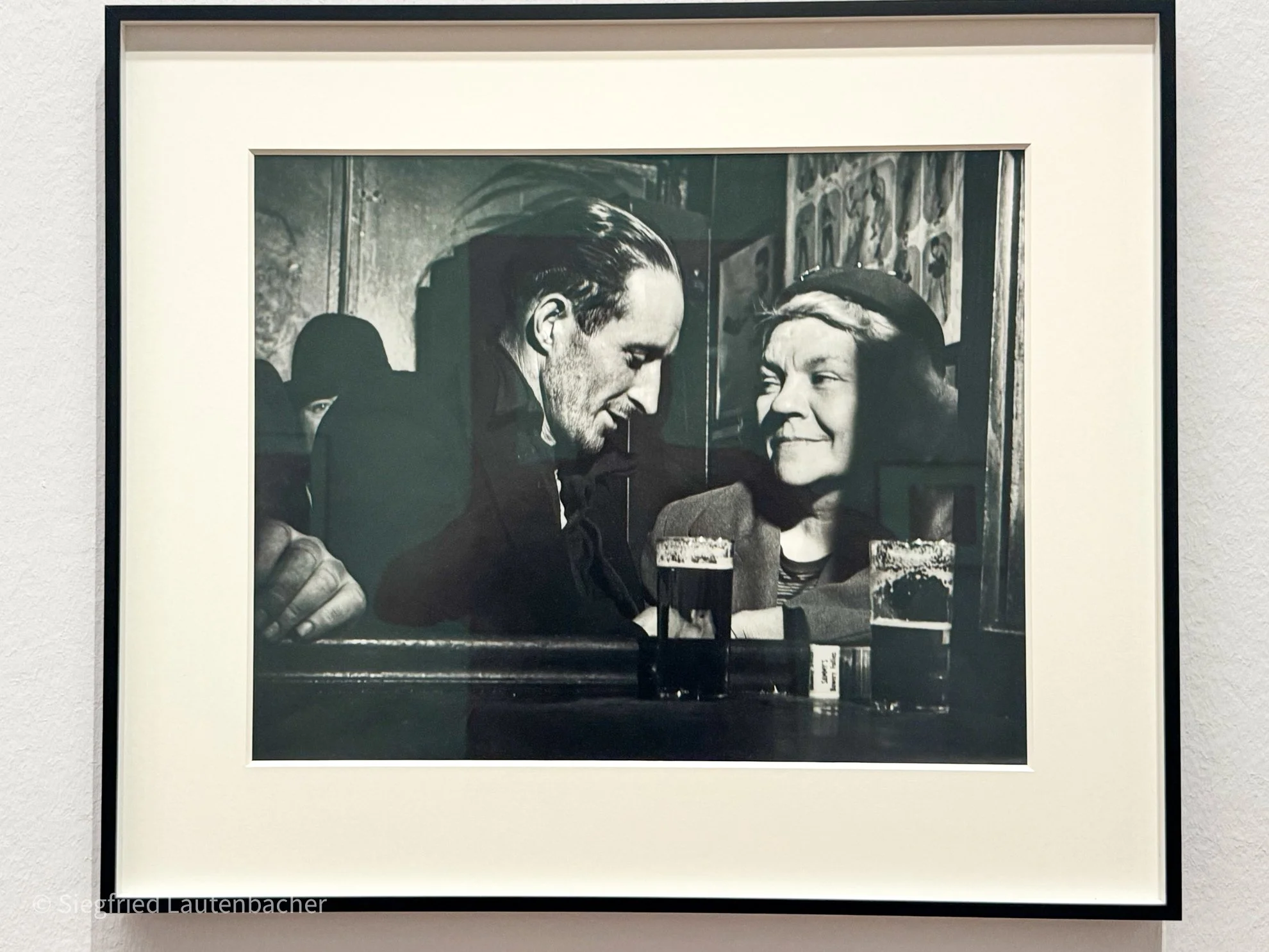 Diese Bandbreite zwischen Schärfe und Empathie zieht sich durch das ganze Werk. In Sammy's Bar in der Bowery, Anfang der Vierziger, fotografiert Model ein Paar an der Theke - er beugt sich zu ihr, sie lächelt mit einem wissenden, müden Ausdruck. Die Biergläser zwischen ihnen, das Licht von der Seite. Das ist keine Karikatur, das ist Zuneigung zum Leben, wie es ist.