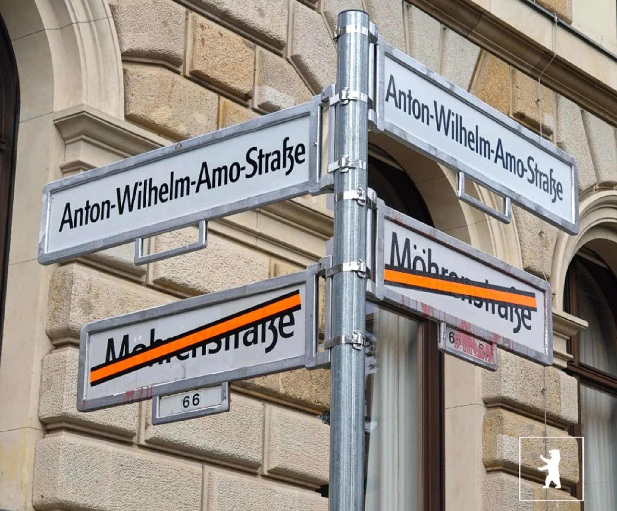 Straßenschilder in Berlin-Mitte: Die ehemalige Mohrenstraße wurde in Anton-Wilhelm-Amo-Straße umbenannt. Das Bezirksamt Mitte teilte die Umsetzung trotz juristischer Einsprüche mit. Ein symbolischer Akt der Erinnerung an den ersten schwarzen Philosophen im deutschsprachigen Raum. Quelle: Bezirksamt Mitte Berlin/X.com